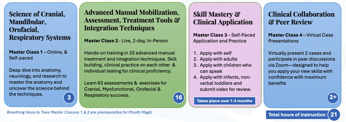 Mouth Magic is available to MD, DO, PT, OT, SLPs who are Baby Jaws & Breathing Nose to Toes grads*, that are ready to exponentially expand their clinical skills.